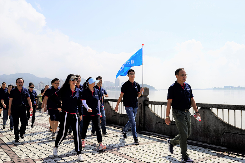 正式会议前,会务组精心组织了环富春江毅行的户外体能拉练活动。为了增加活动的竞争性,体现团结合作的精神,各与会代表分成四个小组进行团队比赛。美丽的富春江畔艳阳高照,大家成群结队、彼此鼓励、斗志昂扬地完成了10公里毅行路程,充分体现金沙990通信职工团队昂扬向上、锐意进取、勇于创新的精神。活动最后,由公司总经理李昊对表现突出的团体进行了颁奖。